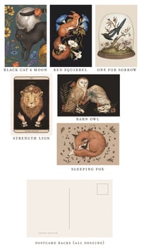 Postcards featuring an assortment of different illustrations by Jessica Roux. Lots of woodland creatures and floral designs to choose from!